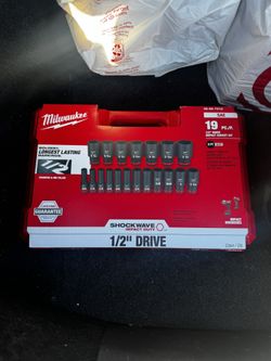 19 piece Milwaukee 1/2 in. Drive SAE 6 Point Impact Socket Set$80Whitewater, WI