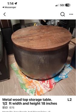 Round metal table with the wooden top opens up for storage$45Lisbon, CT