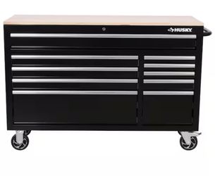 Husky 61 in. W x 23 in. D Heavy Duty 15-Drawer Mobile Workbench Tool Chest with Solid Wood Top in Matte Black$725Atlanta, GA