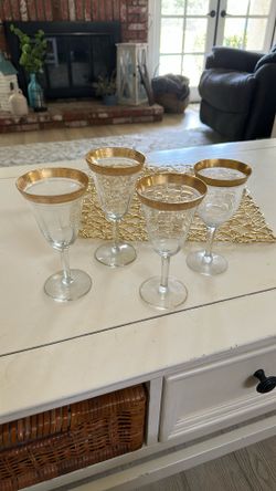 All 4 Gold Trimmed Goblets Total $5 Wine Glasses For $5 Total Valentines Wedding Holiday Romantic Dinner$5La Verne, CA