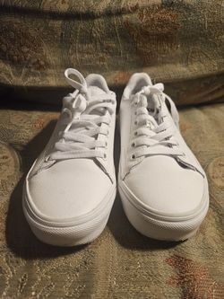 Vans alll white leather women's shoes great shape size womens 5$39St. Louis, MO