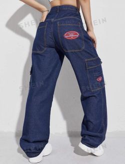 Shein Patched Detail Flap Pocket Wide Leg Jeans$10Lake Stevens, WA