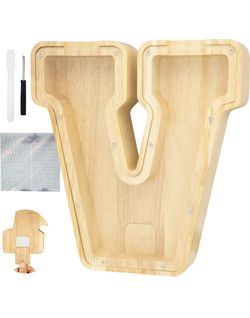 Letter Piggy Bank, Personalized Wooden Coin Banks, Large Wood Money Peny Bank for Adults (9", Alphabet V)$8Riverbank, CA