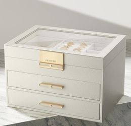 Jewelry Box for Women, 3-Layer Jewelry Organizer with Glass Lid, Flip-Top Leather Jewelry Boxes with 2 Drawers,Earring, Necklace, Ring, Bracelet Organ$28Riverbank, CA