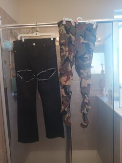 Black Rhinestone Jeans And Camouflage Pants Set $25Fort Worth, TX