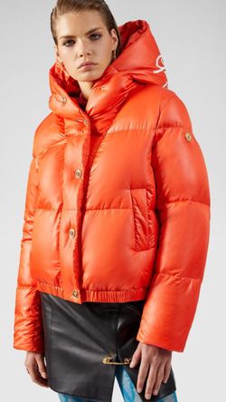 Versace Hooded Printed Quilted Shell Down Jacket In