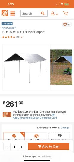 King Canopy Silver Carport 10ft. W x 20ft. D (metal Frame Only)$170Las Vegas, NV