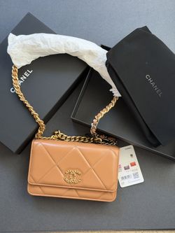 New Chanel 19 Lamb Skin WOC Wallet On Chain Caramel Brown$4,100San Diego, CA