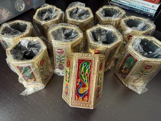 Brand New Set Of 10 Pen, Pencil, Markers Holder With Colorful Peacock Design In Tones Of Gold, Red, Green And Blue Designs$25Bothell, WA