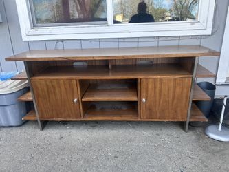 Mid-Century style TV stand with a woodgrain finish and metal support structure$60Stockton, CA