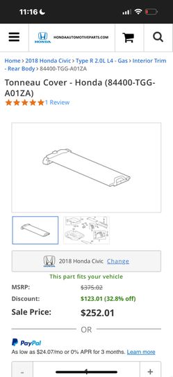 2017-2023 Honda Civic Type R / Hatchback Trunk Covers $200Mentone, CA