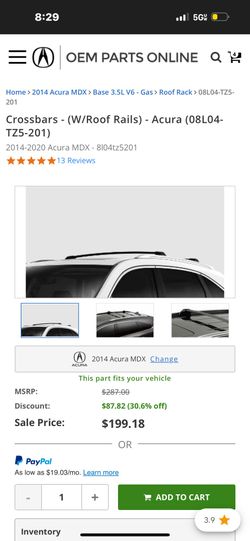 Acura MDX Roof Crossbars $180Oak Glen, CA