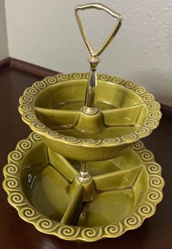 Vintage Calif USA pottery tiered server dish avocado green$20Cypress, TX