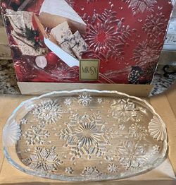 Mika’s a Crystal 15” Platter Oval Snowflakes Frosted Christmas In Box$15Cypress, TX