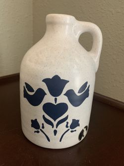 Harris Pottery Jug Crock pottery Clinton Cobalt blue heart bird flower$20Cypress, TX