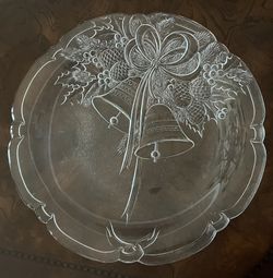 Huge Mikasa Crystal Christmas bells Glass Platter Plate Scalloped 15”$25Cypress, TX