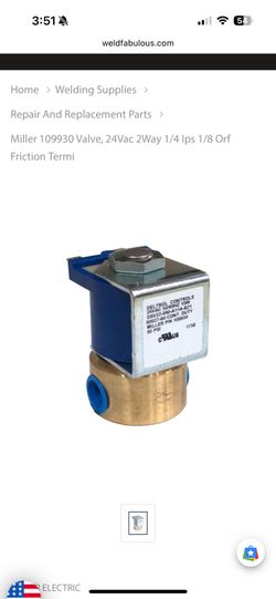 Miller 109930 Valve, 24Vac 2Way 1/4 Ips 1/8 Orf Friction Termi$140Laguna Niguel, CA