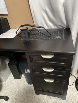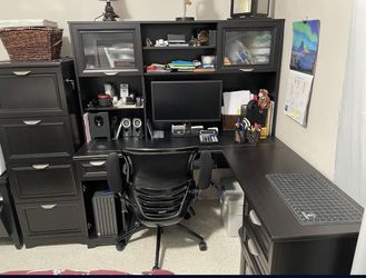 L Shaped Desk With Hutch and Four Drawer File Cabinet - and free Chair$500Miami, FL