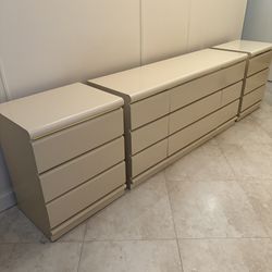 Broyhill Cream Lacquer Triple Dresser And 2 Nightstands$250Hillsboro Beach, FL