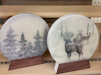 Beautiful ceramic Christmas Trees And Deer With Wood Base $7 EACH$7Simpsonville, SC