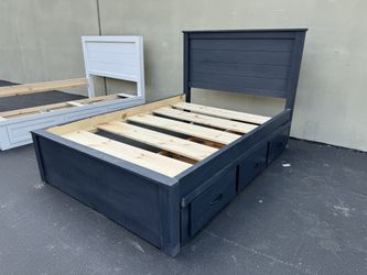 New Full Size Bed Frame With 3 Storage Drawers On One Side! Made Out Of Solid Pine Wood! $640Irwindale, CA