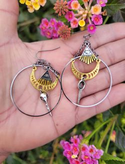 Crescent Moon Phase Evil Eye Crow Skull Earrings$17Riverside, CA