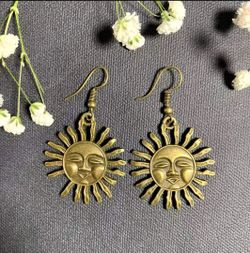 Brass Sun Face Drop Earrings $12Riverside, CA