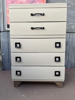 White Solid Wood Tall Dresser With Five Drawers In Good Condition All Drawers Open Just Fine $185Fresno, CA