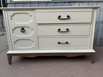 White Solid Wood Long Dresser With Three Big Drawers And Shelf In Good Condition All Drawers Open Just Fine $225Fresno, CA