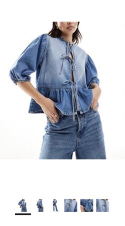 Denim Tie Front Puff Sleeve Top Blouse Shirt Small$10Alhambra, CA
