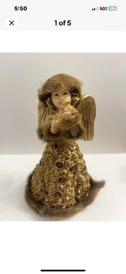 Angel Figurine Holding Bird 7” Tall Faux Fur $10Cedar Hill, TX
