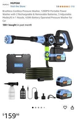 Brushless Cordless Pressure Washer, 1200PSI Portable Power Washer with 2 Rechargeable & Removable Batteries, 3 Adjustable Modes/6 in 1 Nozzle, 4.0Ah B$80Rancho Cucamonga, CA