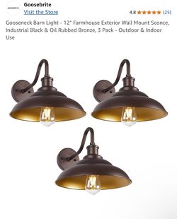 Gooseneck Barn Light - 12" Farmhouse Exterior Wall Mount Sconce, Industrial Black & Oil Rubbed Bronze, 3 Pack - Outdoor & Indoor Use$50Rancho Cucamonga, CA