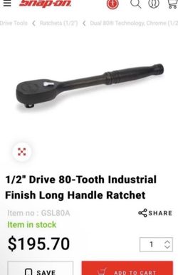 Snap On 1/2" Drive 80-Tooth Industrial Finish Long Handle Ratchet $120$120Ontario, CA