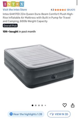 Intex 64417ED 22in Queen Dura-Beam Comfort Plush High-Rise Inflatable Air Mattress with Built in Pump for Travel and Camping, 600lb Weight Capacity$35Ontario, CA