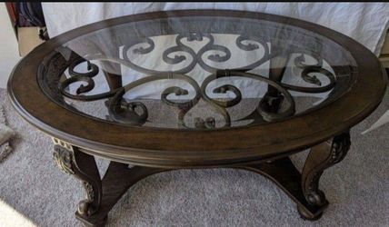 Vintage Metal Glass And Wood Coffee Table