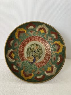 Vintage Peacock Enamel Brass Bowl Pedestal Dish Hand Painted Indian Decor$10Highland, CA