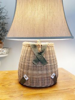 Vintage Woven Wicker Fly Fishing Trout Fish Creel Basket TABLE LAMP$100Bloomington, CA