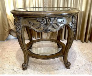 ⭕️ French Provincial Side Table with Glass Top & Lower Shelf$220Oakland Park, FL