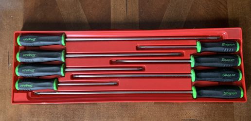 SnapOn 8pc Extra Long XL Combo Screwdrivers Set Cushion Grip Handle, SGDXL80B. Like new condition $170San Diego, CA