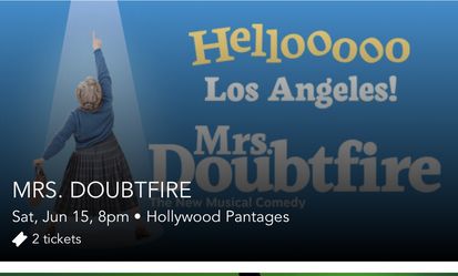 Mrs Doubtfire and Peter Pan Pantages Theatre Hollywood $100Seal Beach, CA