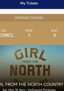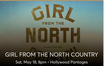 Girl From The North Country Pantages May 18 8pm Excellent Seats $110Los Angeles, CA