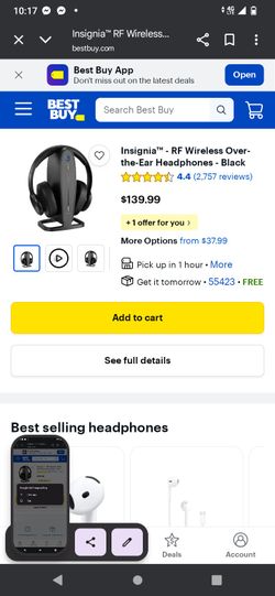 Insignia Wireless RF Over The Ear Headphones$50Rancho Cucamonga, CA