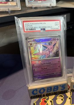 2025 POKEMON PRE EN-PRISMATIC EVOLUTIONS #033 ESPEON MASTER BALL REVERSE PSA 9$30Fresno, CA
