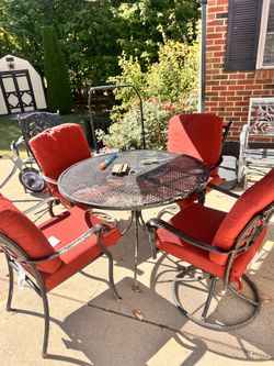 ‼️Best offer & pick up today ‼️metal chairs with cushions and table$285Burlington, KY