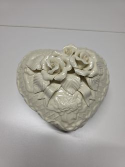 Heart Shape Bisque Porcelain Jewelry Box, Keepsake, Trinket with Rose Design$5Garden Grove, CA