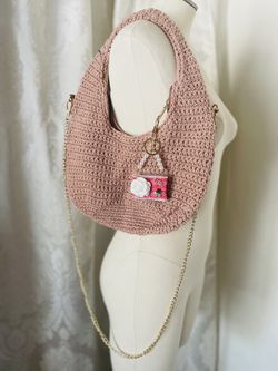 Hobo Bag Old Rose Like Light Mauve Pink Color Zipper Closure Braided Crochet Convertible Purse$75Covina, CA