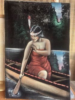 Vintage David Ortiz Priscilla Presley as Native yAmerican Black Velvet Painting oddity*$49Portland, OR