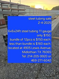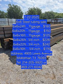 New 6x6x24ft Tubing 11gauge $160Dallas, TX