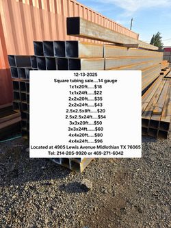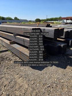 New 2x2x20ft Tubing 14g $35Cedar Hill, TX